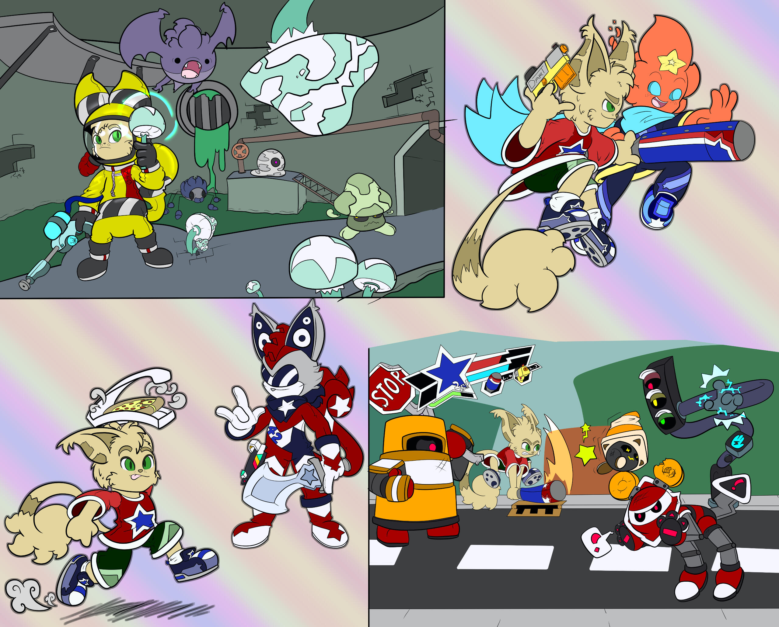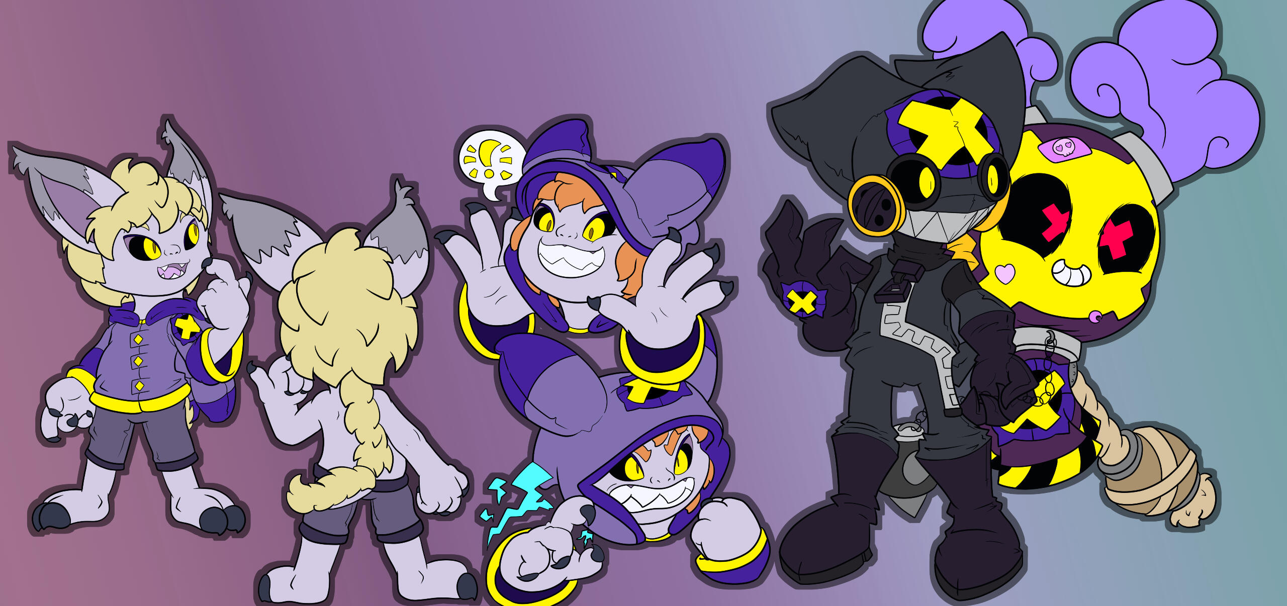 Some character art I did for a game that... frankly, I have no idea what happen to. Never heard back from getting paid for the last batch, so... dunno! Anyways, there wasn't an NDA, so I think I'm good to post these, 2 years later, now in 2024? If not, I can take 'em down, but for now, I'mma post 'em, because I really had fun with them.They wanted a "sharp, angular" art style for these, so that was a fun exercise. :P You can see the "before" sprites in the first page for reference.